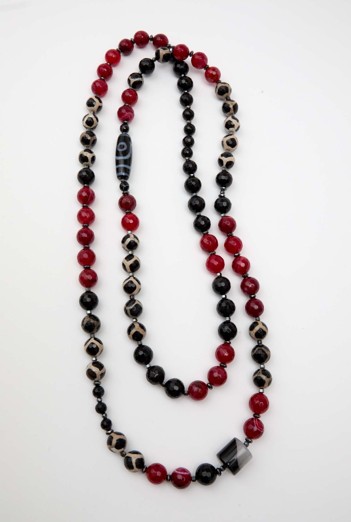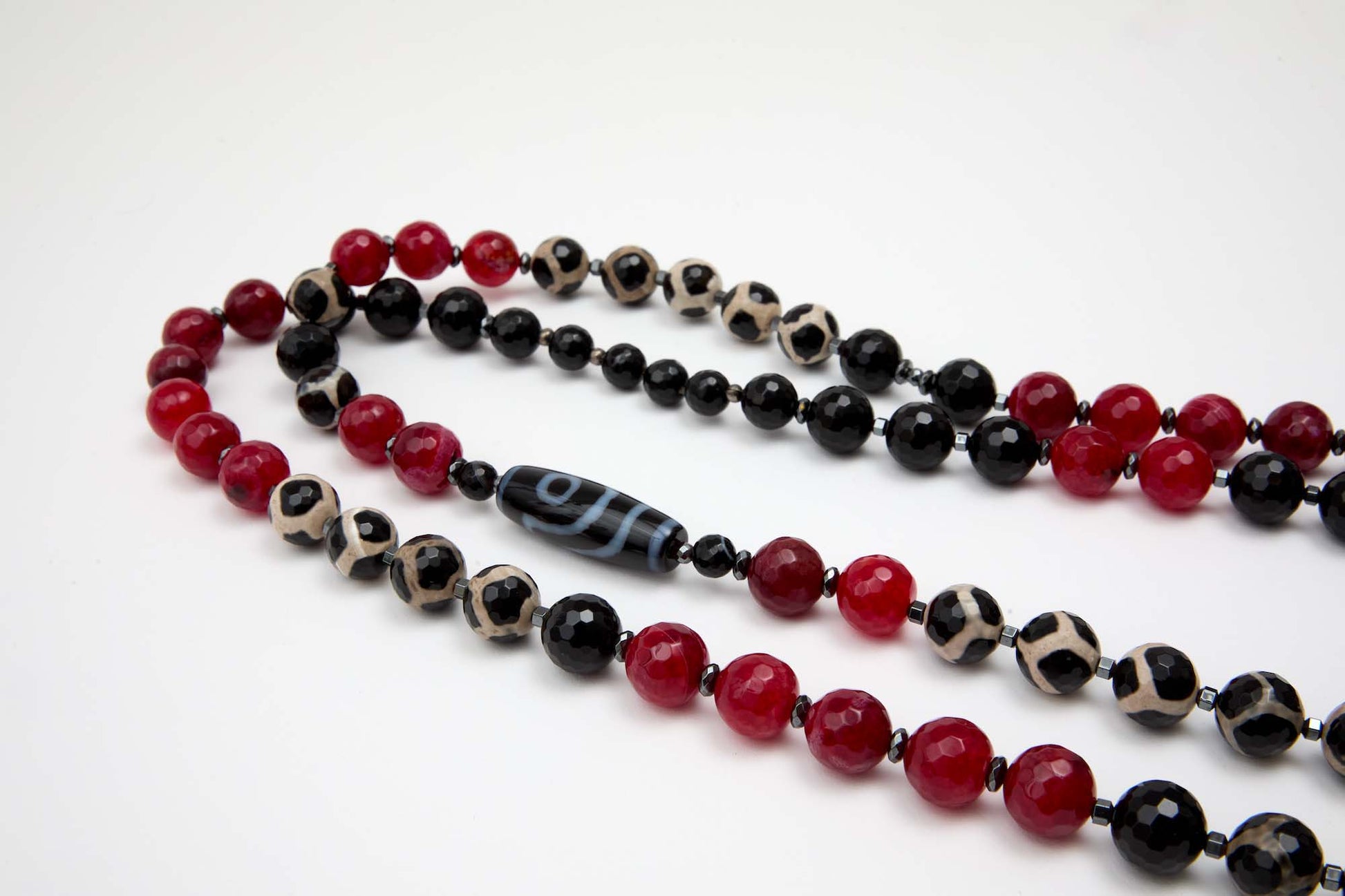 The Boss Necklace makes no apologies — it’s bold, dynamic, and meant to be seen. Tibetan agate and dyed red agate beads are accented with hematite spacers and striking agate focals, creating a wrap design full of power and presence. A true Embrace statement piece, Boss is jewelry that commands attention.