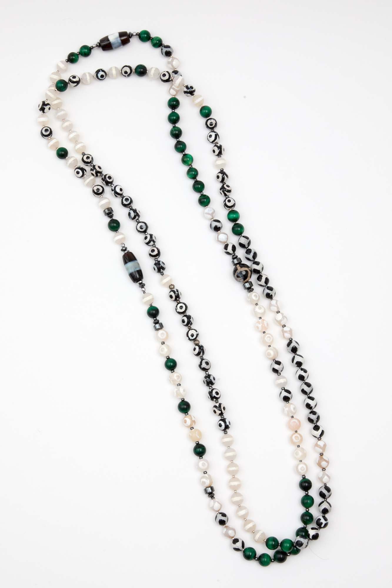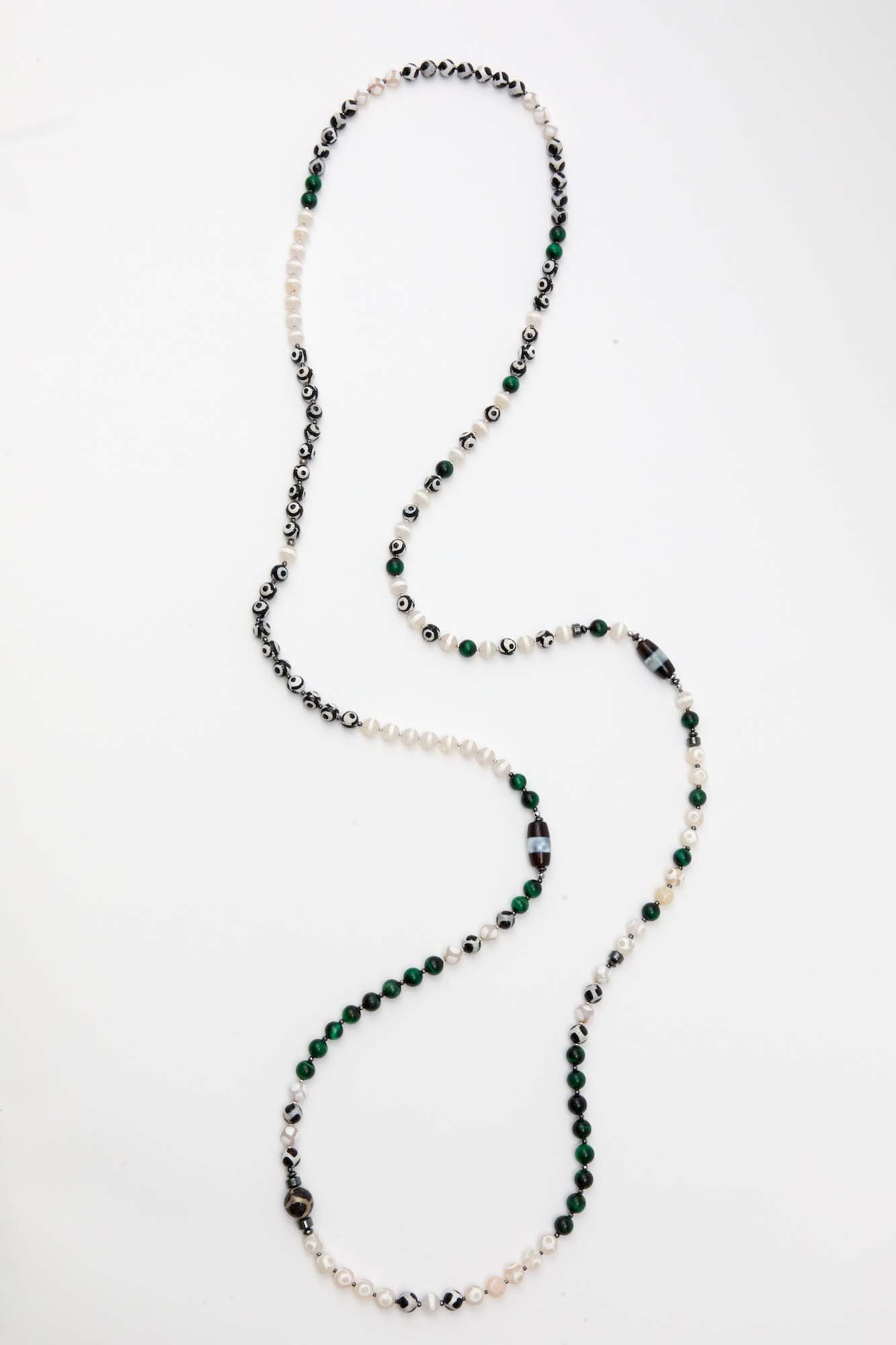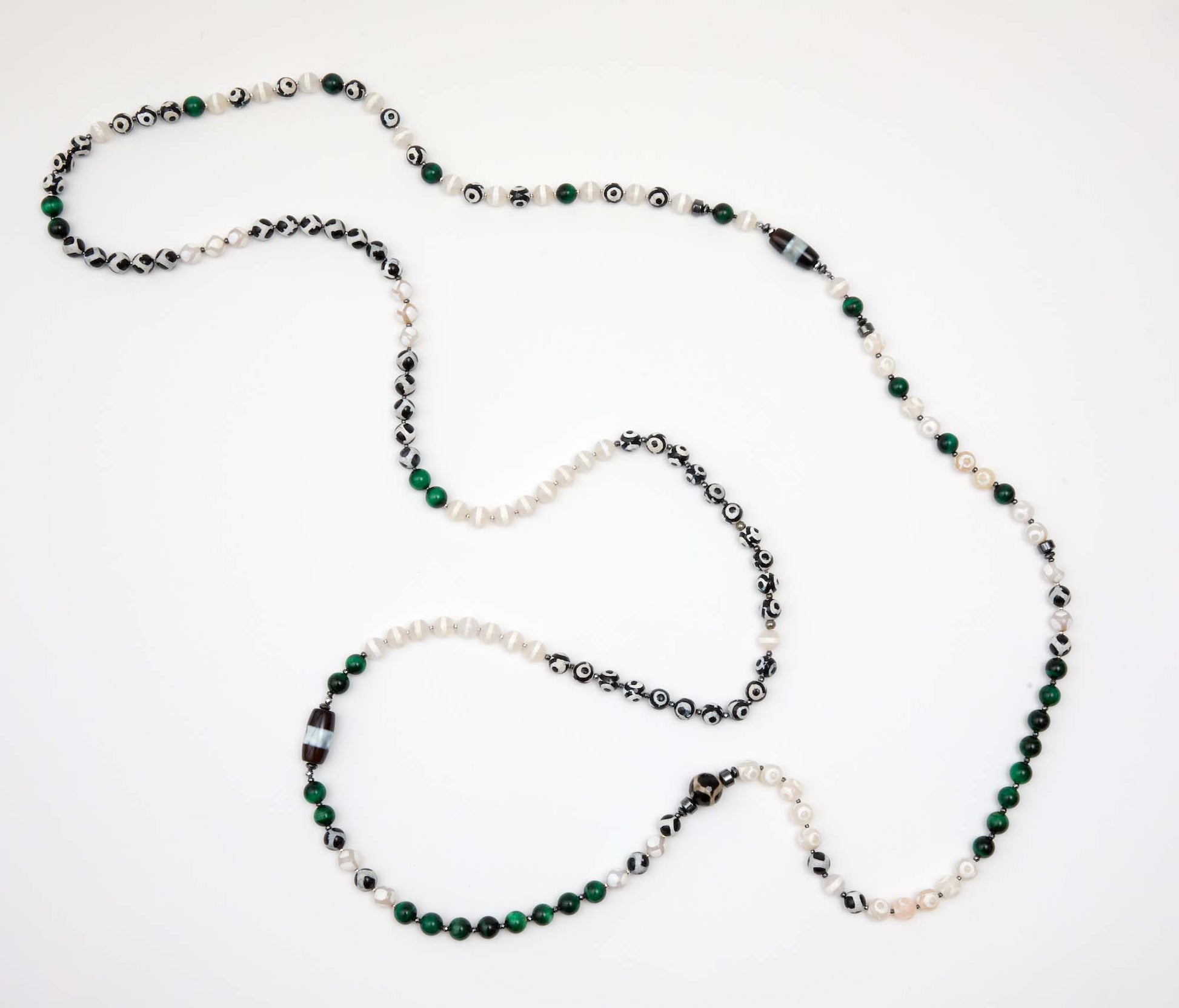 The Quinn Necklace is bold, rich, and unmistakably unique. Mixed Tibetan agate beads meet dyed green tiger eye and hematite spacers in a versatile wrap design that layers depth and texture. A statement piece through and through, Quinn embodies the Embrace Collection — powerful, refined, and one of a kind.